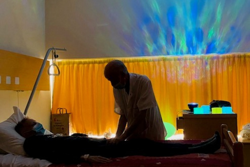 Désormais, une équipe formée et motivée se rend dans les chambres des patients avec un chariot appelé Maya, pour proposer cette toilette innovante et relaxante. Elle repose sur la stimulation des quatre sens : toucher, odorat, ouïe et vue. Ainsi, chauffe-serviette, jeux de lumière, diffuseur d’huile essentielle ou encore musiques sont au choix du patient pour créer une ambiance de confort et de mise en confiance. Bravo à Hassanati, Liliane, Joel, Edith, Djeneba, Bertin, Marco, Thérèse et toute l’équipe de soins de suite oncologique !